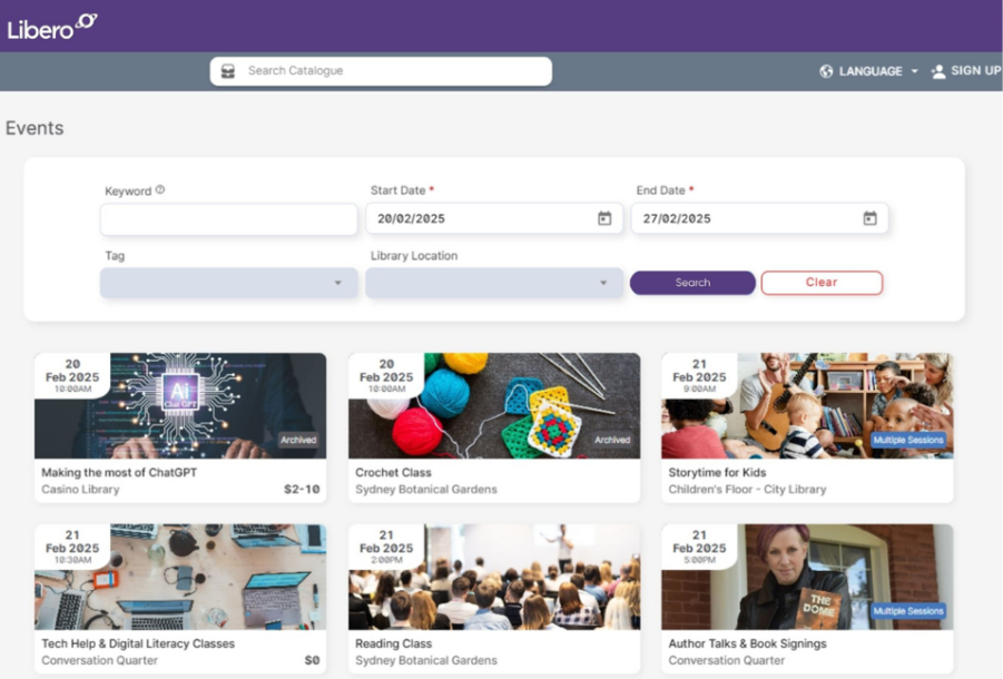 Libero 6 supports libraries by allowing staff to easily schedule, promote, and manage both free and ticketed events – all from one dashboard. Members can search, register, and manage their bookings (Figure 2).
